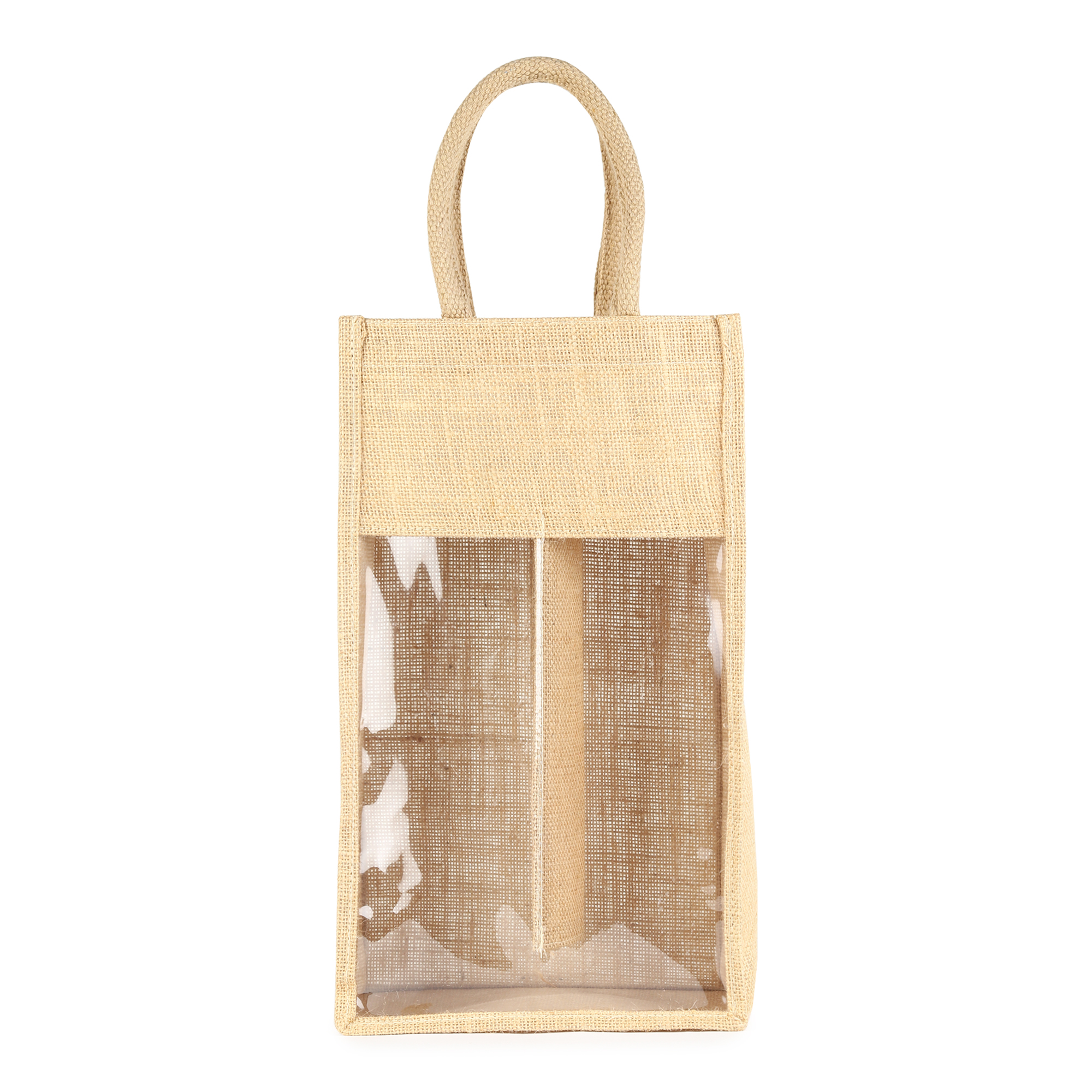 2-Bottle Jute Wine Bag with PVC Clear Front DRW0994475