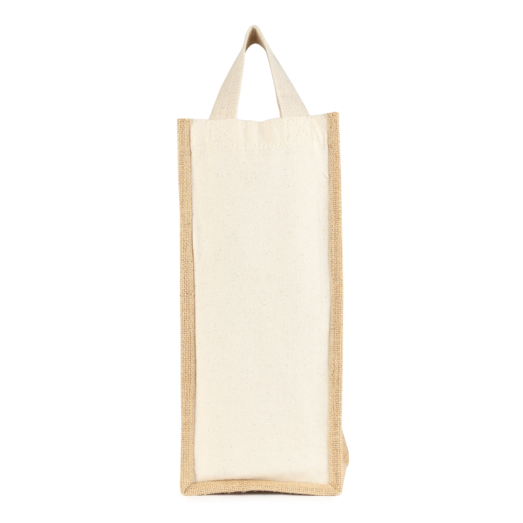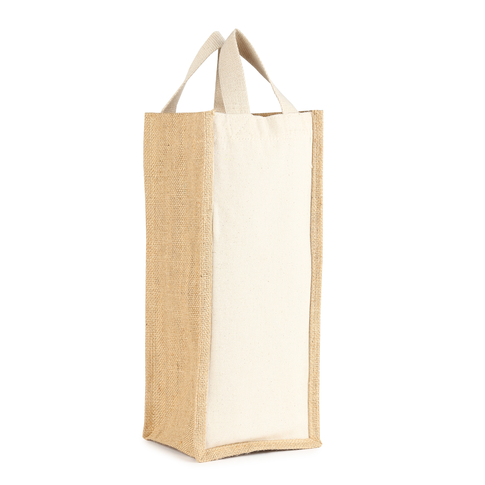 Perfectly sized to fit a standard wine or champagne bottle, this bag combines strength and sophistication — ideal for corporate gifting, winery promotions, retail packaging, or event giveaways. The sturdy construction and natural fibers make it an excellent sustainable alternative to plastic or paper gift bags.